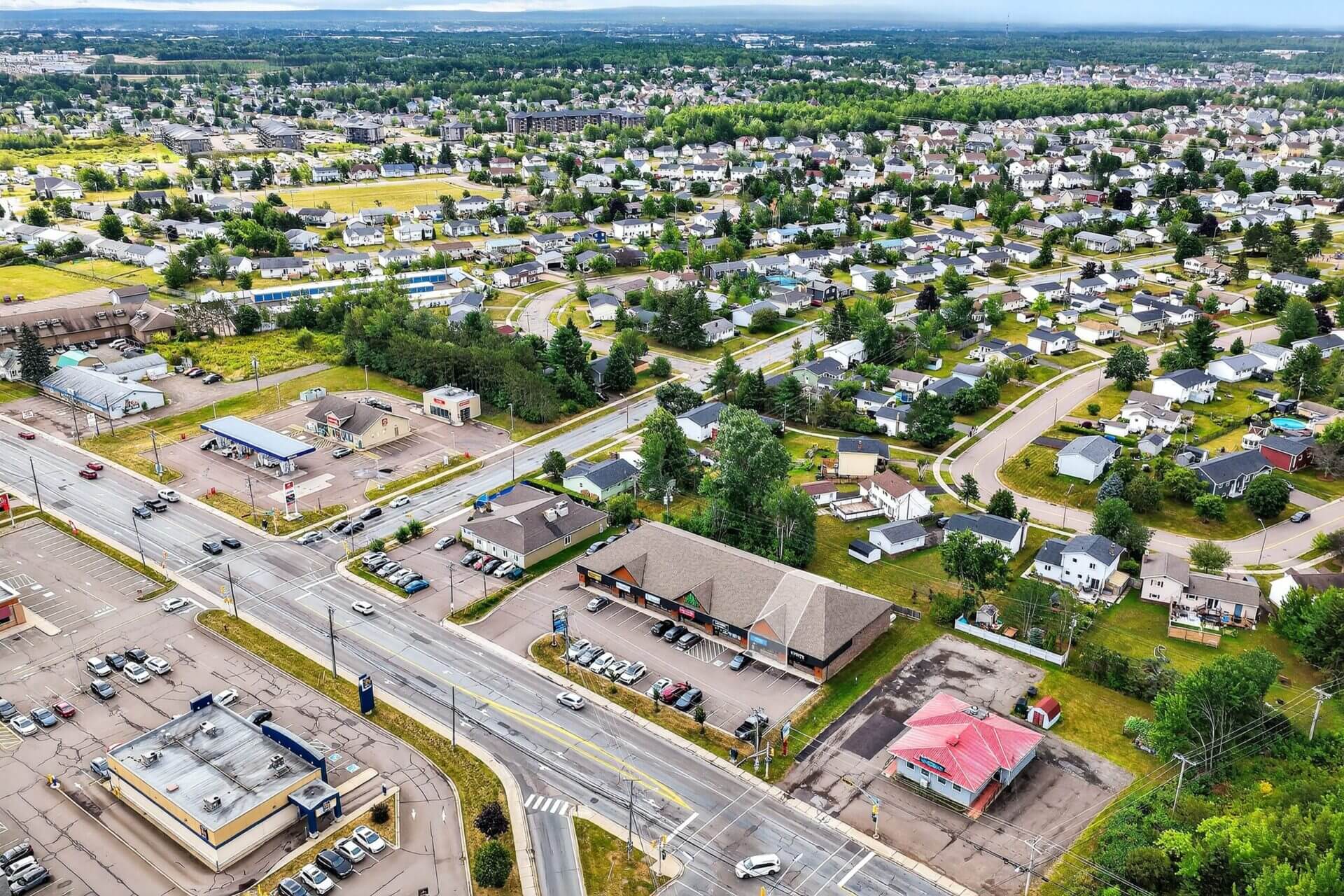 Situated on a prominent lot on the edge of Moncton North, Evergreen Plaza at 1966 Mountain Road offers an exceptional ground-floor commercial space. With a direct entrance on Mountain Road, this unit enjoys high visibility and significant traffic.
